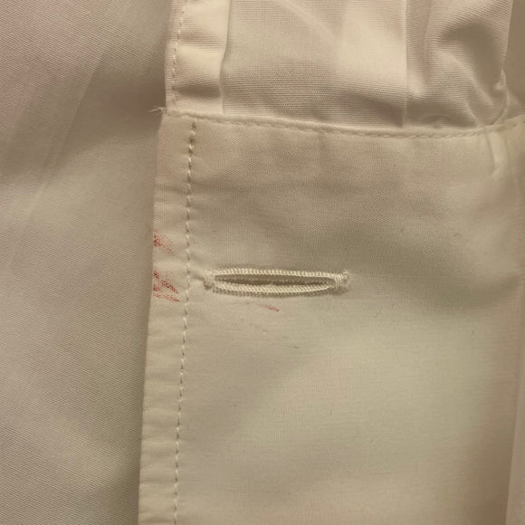 Right sleeve button is dirty and cracked.
