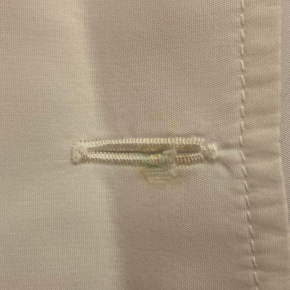 Glue and mold residue on the button hole of the right sleeve.