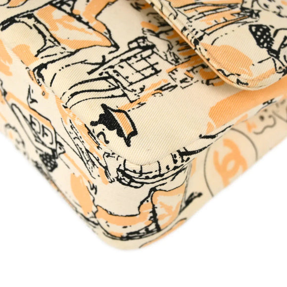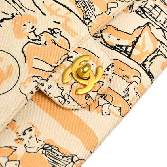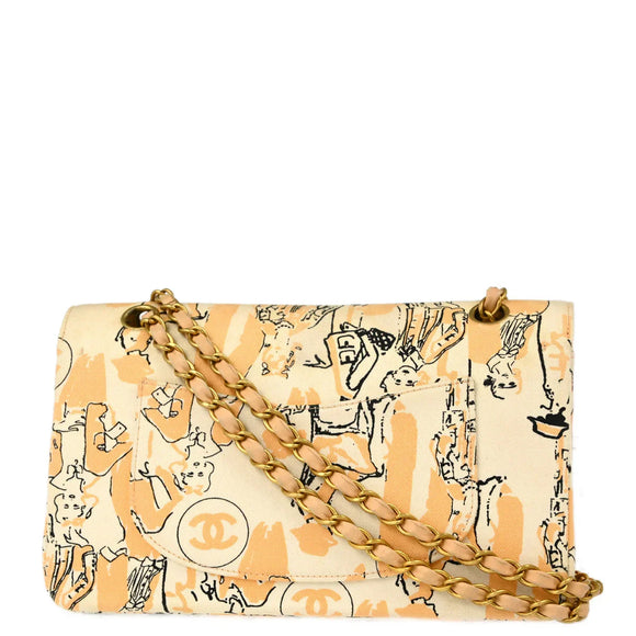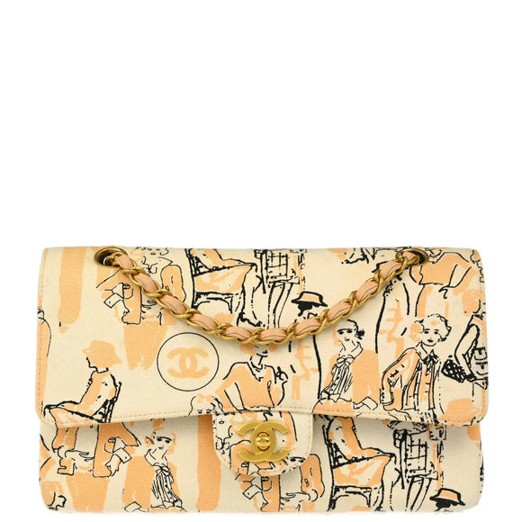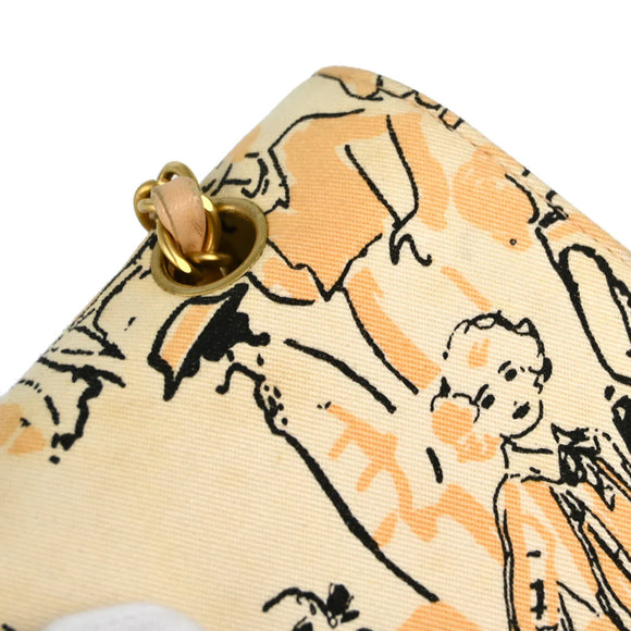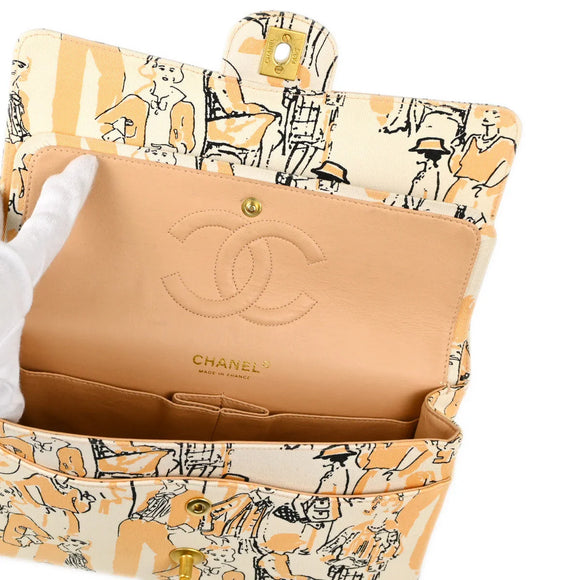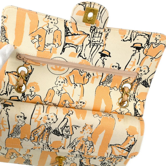 Chanel 2003-2004 Peach White Canvas Medium Classic Double Flap Shoulder Bag