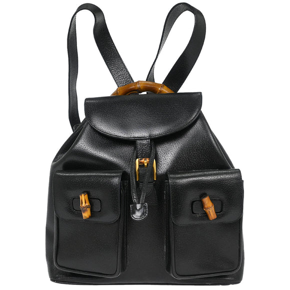 Gucci Black Pigskin Bamboo Backpack