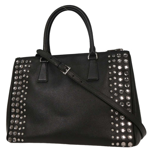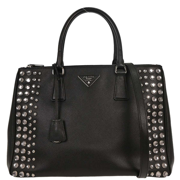 Prada Black Galleria Tote Studded 2way Shoulder Handbag