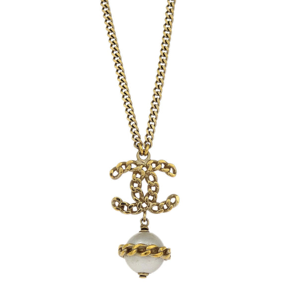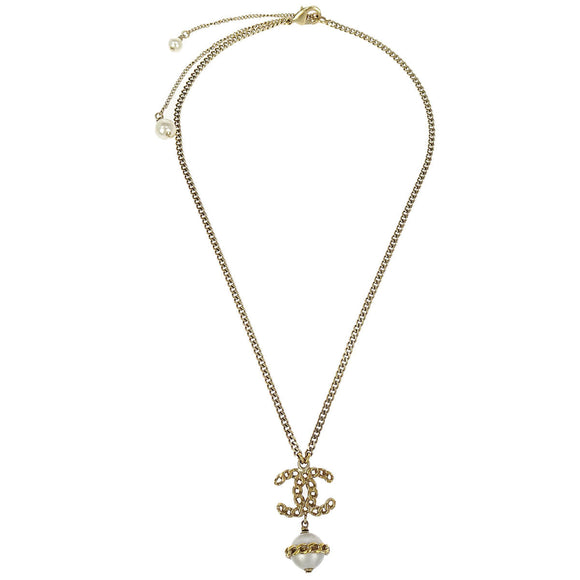 Chanel Charm CC Gold Chain Necklace Costume Pearl B16B