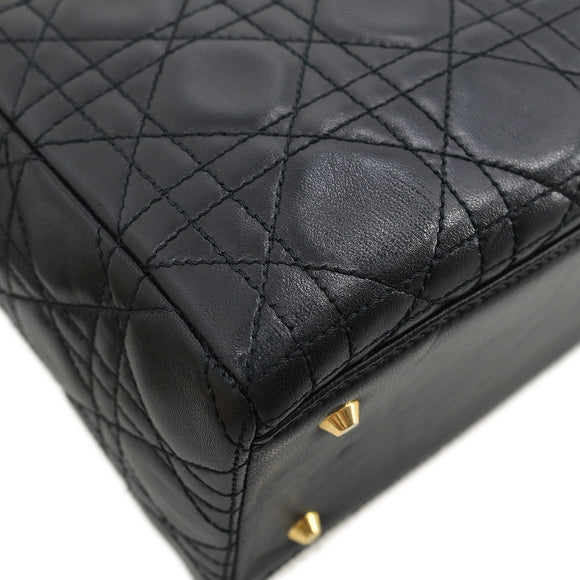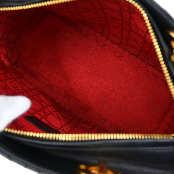 Christian Dior Black Lambskin Medium Lady Dior Cannage 2way Shoulder Handbag