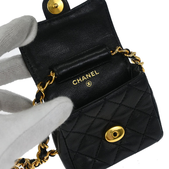 Chanel 1989-1991 Black Lambskin Micro Classic Flap Shoulder Bag Pochette