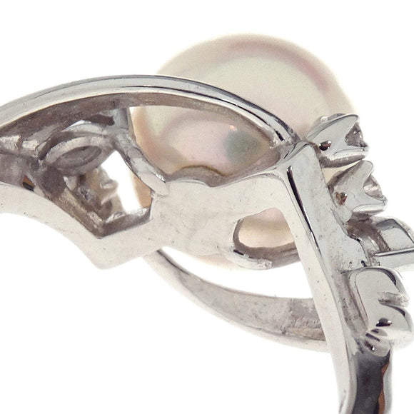Mikimoto Ring Pt950 Genuine Pearl Diamond Silver #52 Jewelry