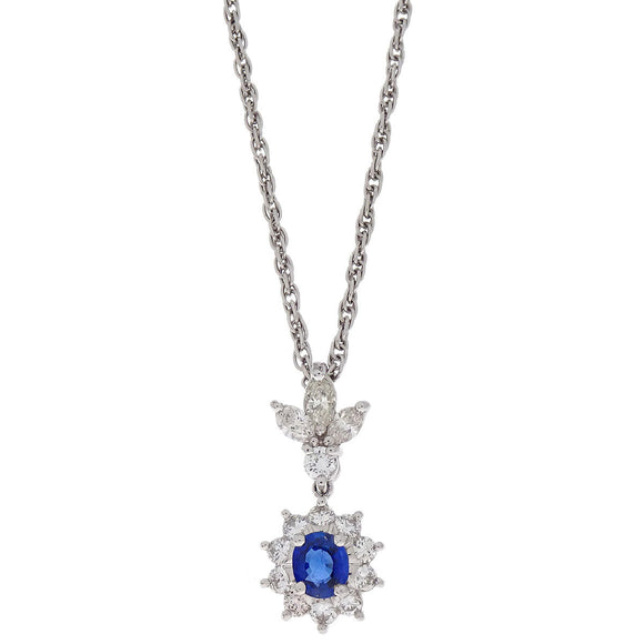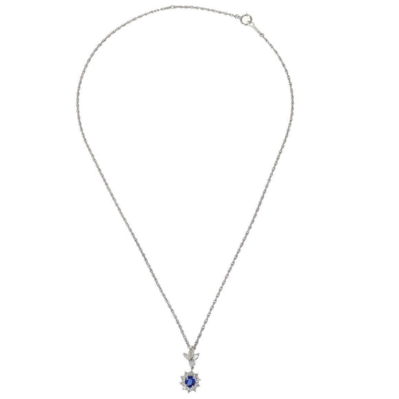 Pendant Necklace Pt900 Pt850 Sapphire Diamond Silver Jewelry