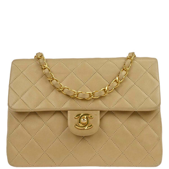 Chanel Beige Lambskin Classic Square Flap Shoulder Bag 20