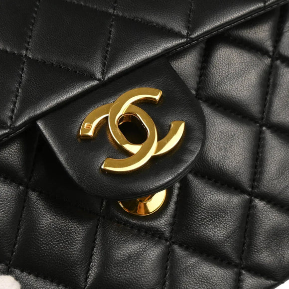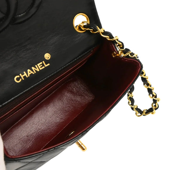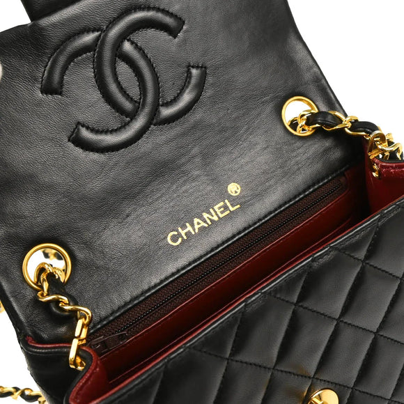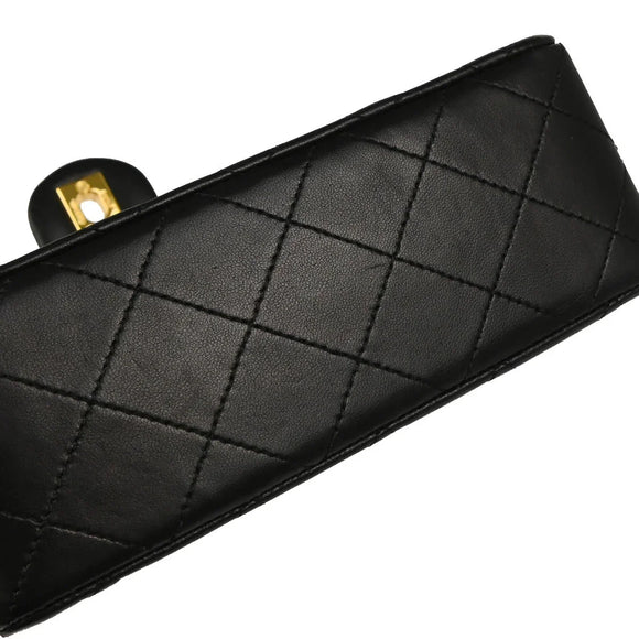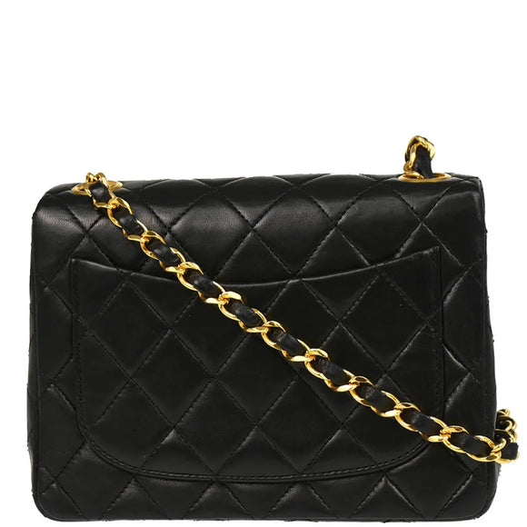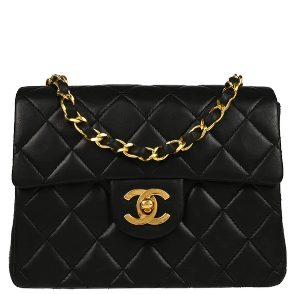 Chanel 1986-1988 Black Lambskin Mini Classic Square Flap Shoulder Bag