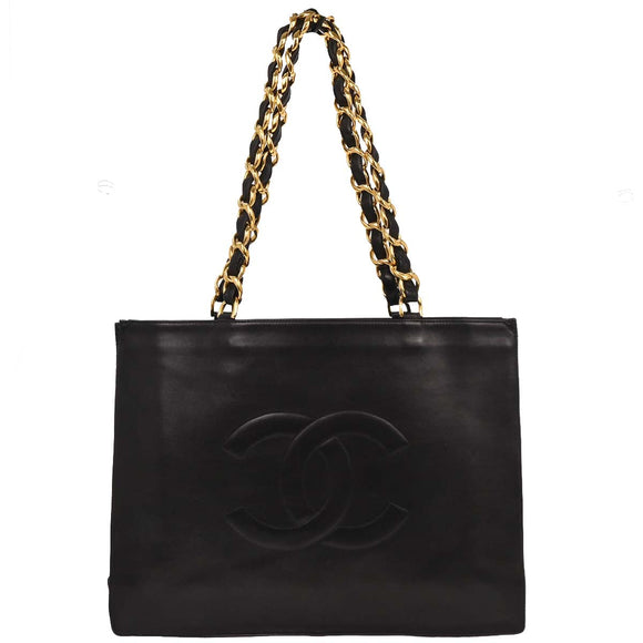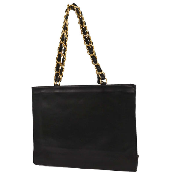 Chanel 1994-1996 Black Lambskin Tote Chain Handbag