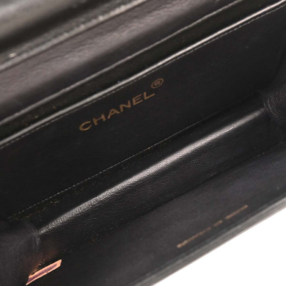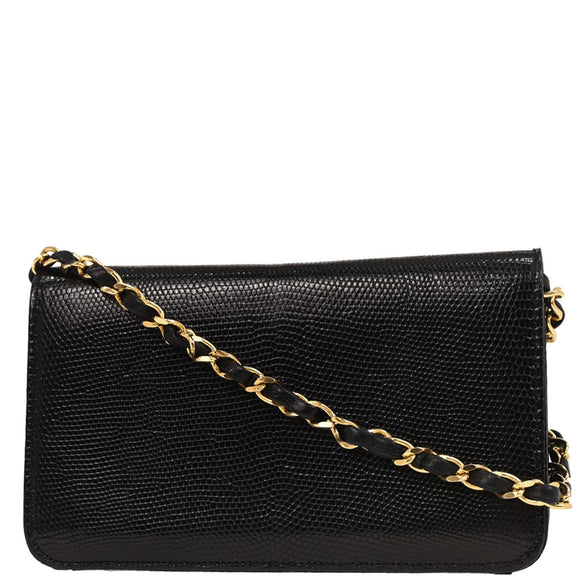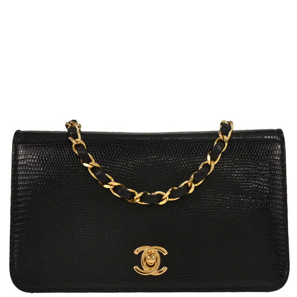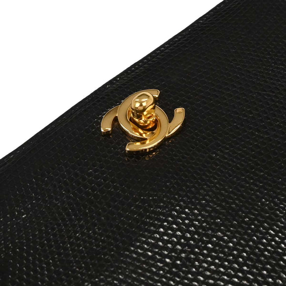 Chanel 1989-1991 * Black Lizard Turnlock Mini Full Flap Shoulder Bag