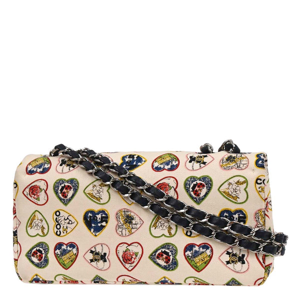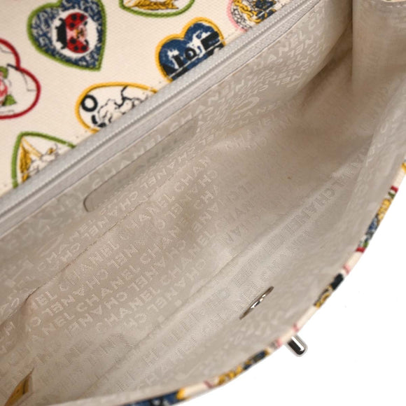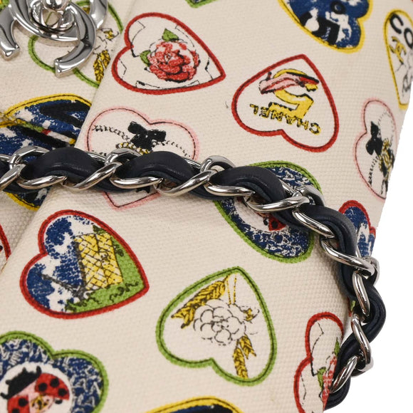 Chanel 2005-2006 White Canvas Valentine Chain Shoulder Bag
