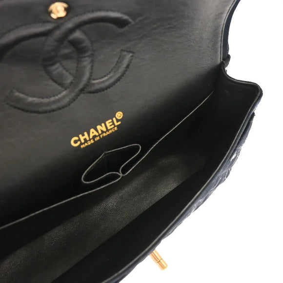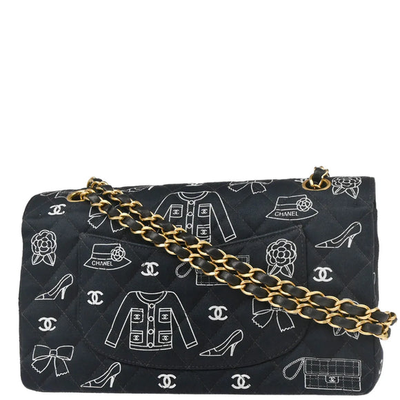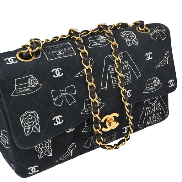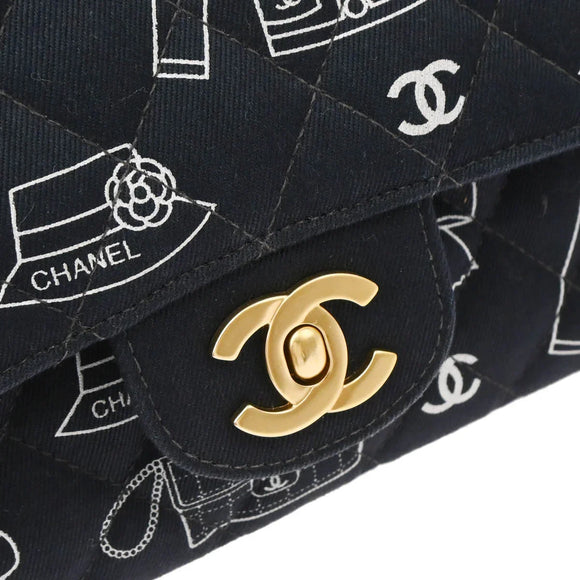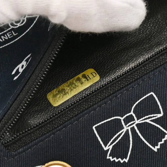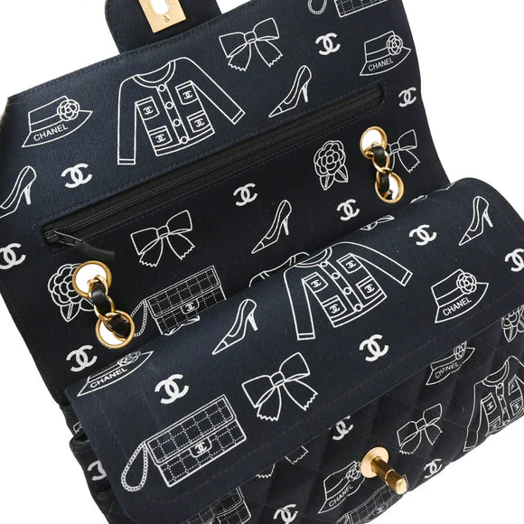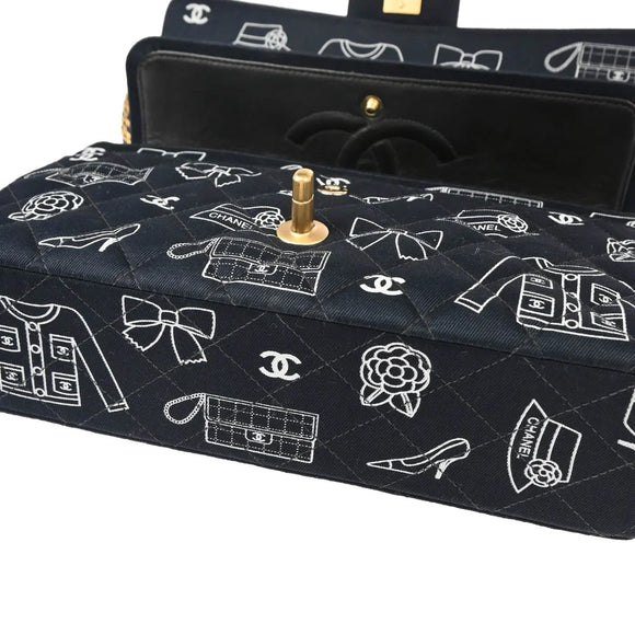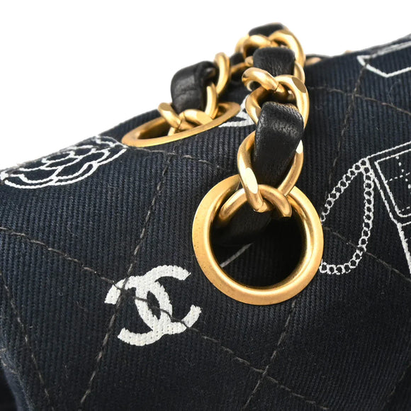 Chanel 2002-2003 Navy Canvas Icon Medium Classic Double Flap Shoulder Bag