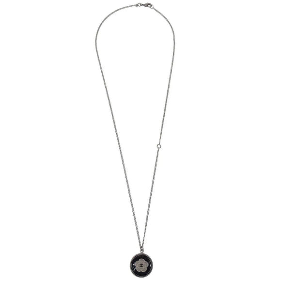 Chanel Medallion Pendant Necklace Silver 06P