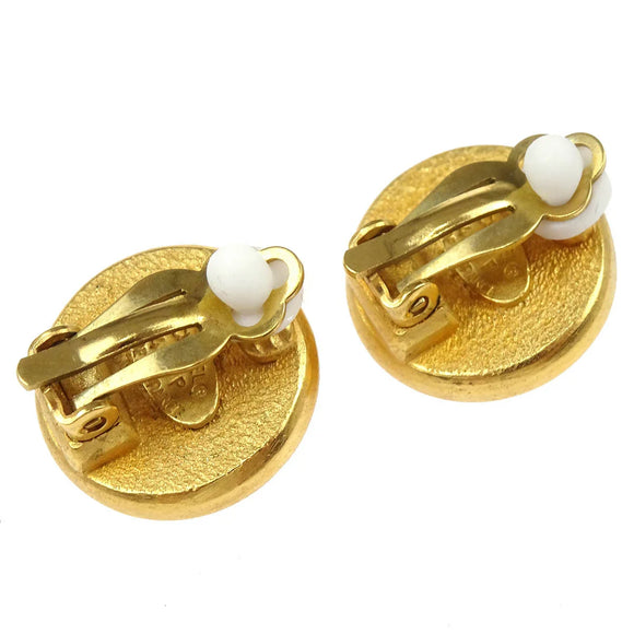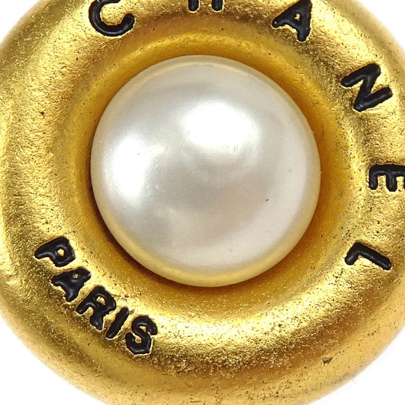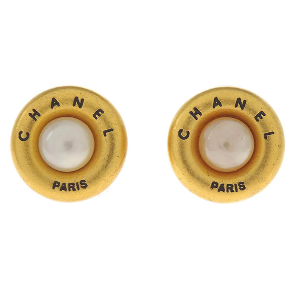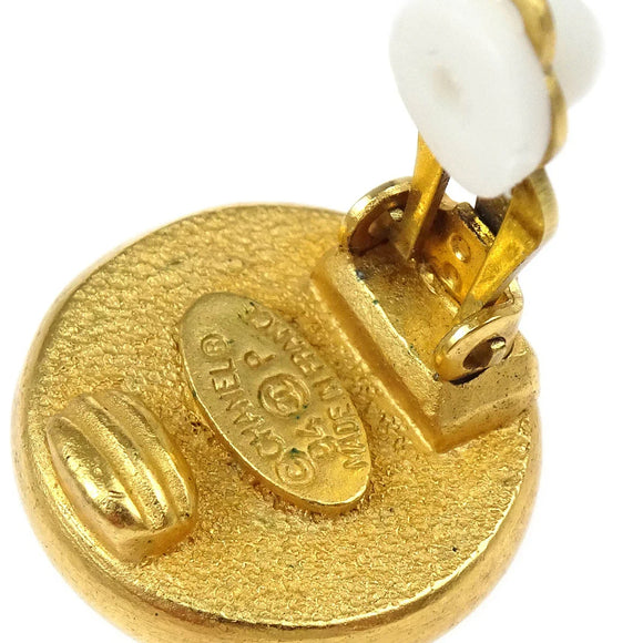 Chanel Earrings Clip-On Button Costume Pearl Gold 94P