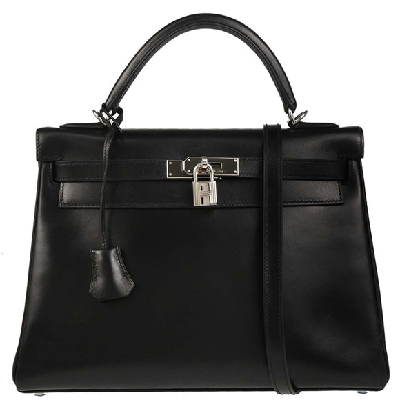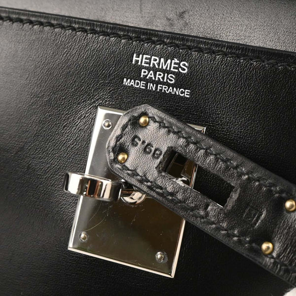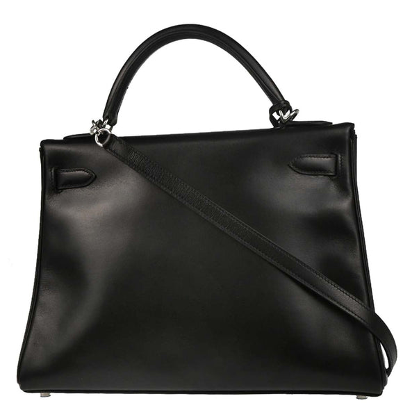 Hermes 2007 Black Box Calf Kelly 32 Retourne 2way Shoulder Handbag