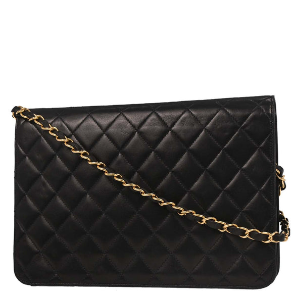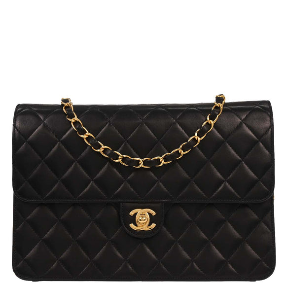 Chanel 2001-2003 Black Lambskin Turnlock Medium Half Flap Shoulder Bag