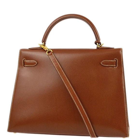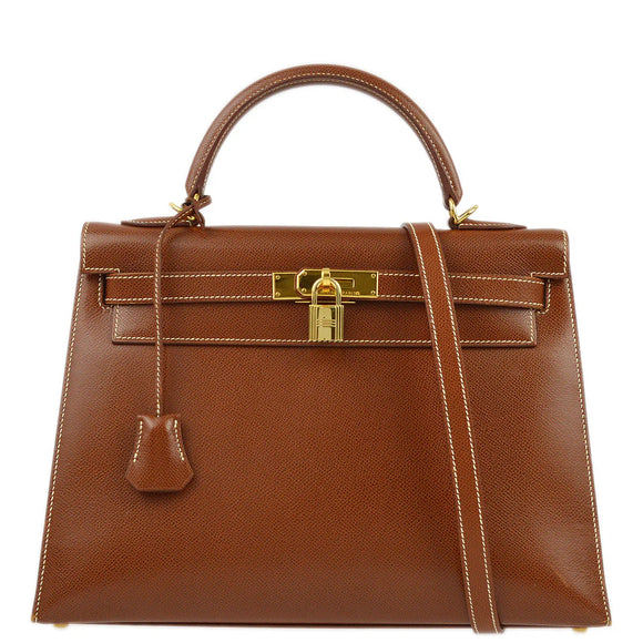 Hermes 2003 Noisette Veau Grain Lisse Kelly 32 Sellier Handbag