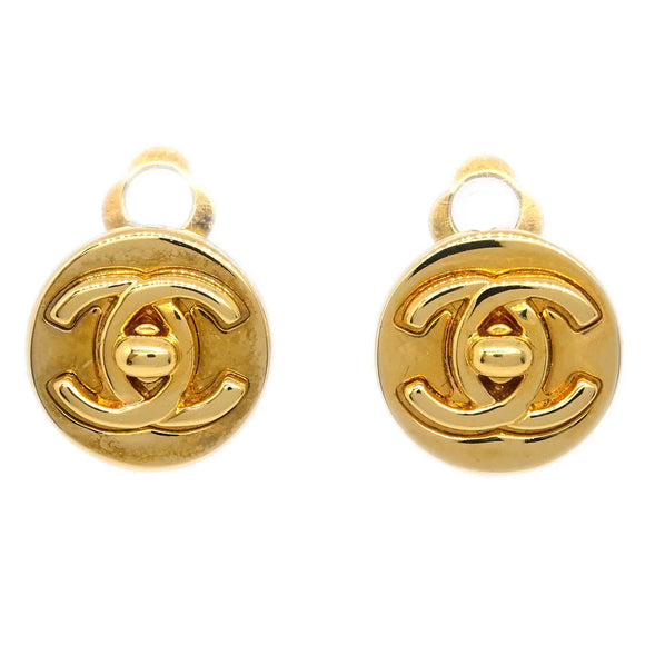Chanel CC Turnlock Button Earrings Gold Clip-On 97A