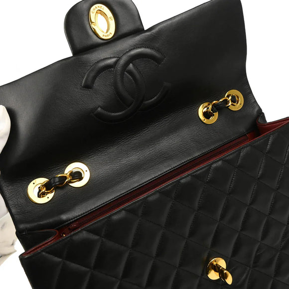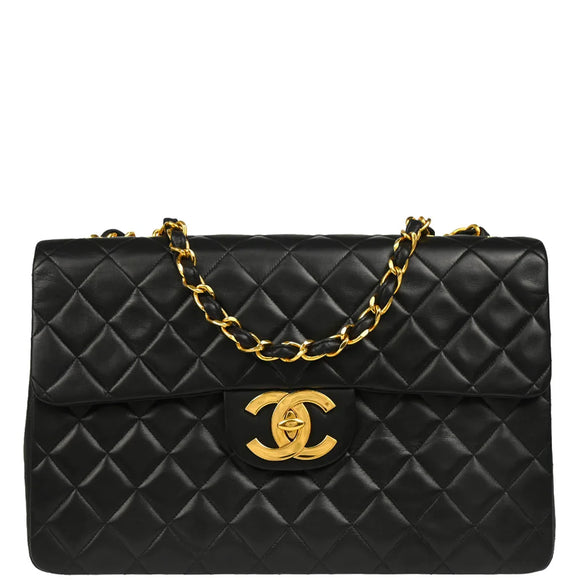 Chanel 1991-1994 Black Lambskin Maxi Classic Flap Shoulder Bag