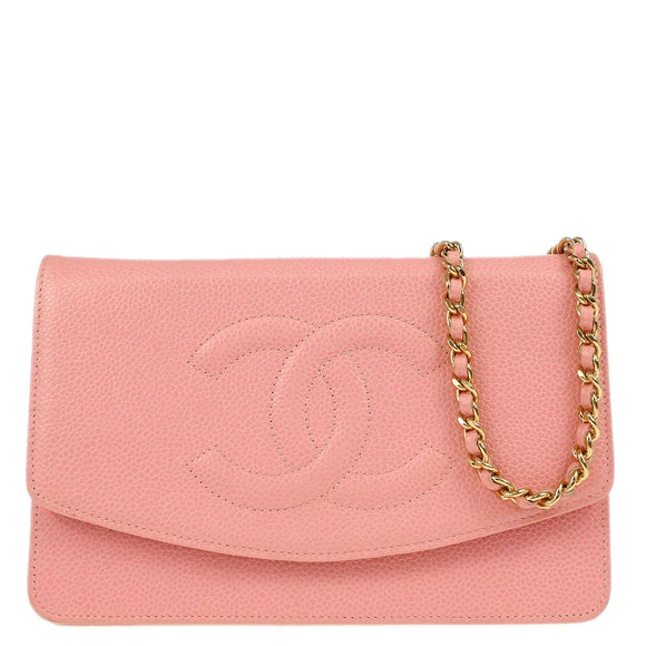 Chanel 2005-2006 Pink Caviar Timeless WOC Chain Shoulder Wallet Bag
