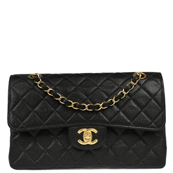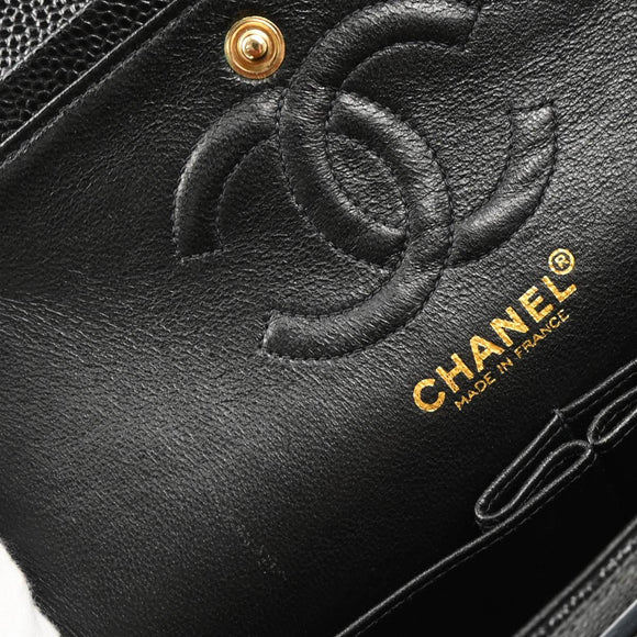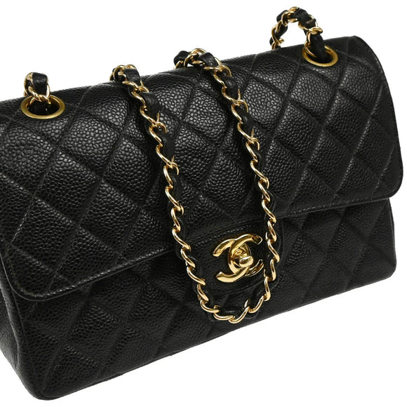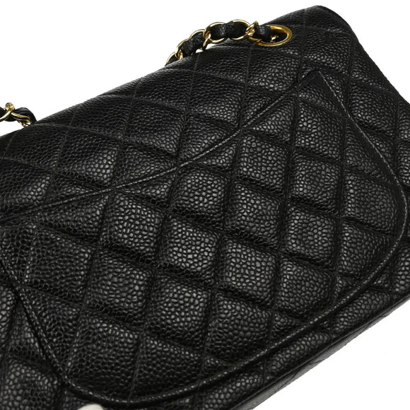 Chanel 2001-2003 Black Caviar Small Classic Double Flap Shoulder Bag