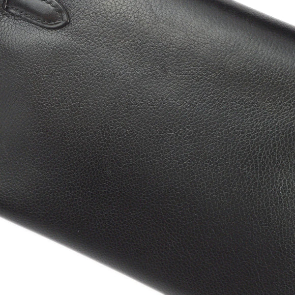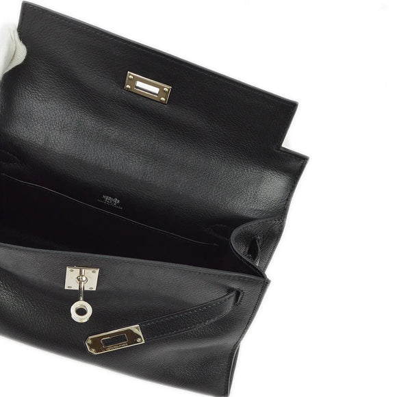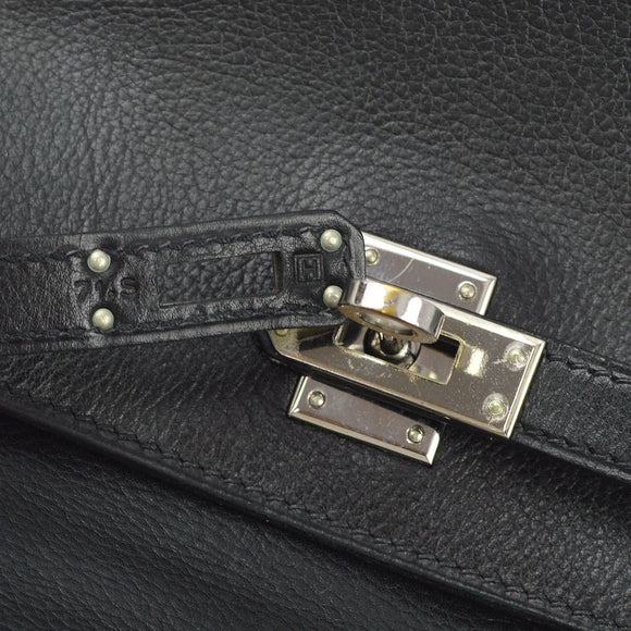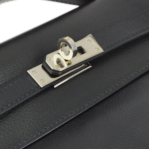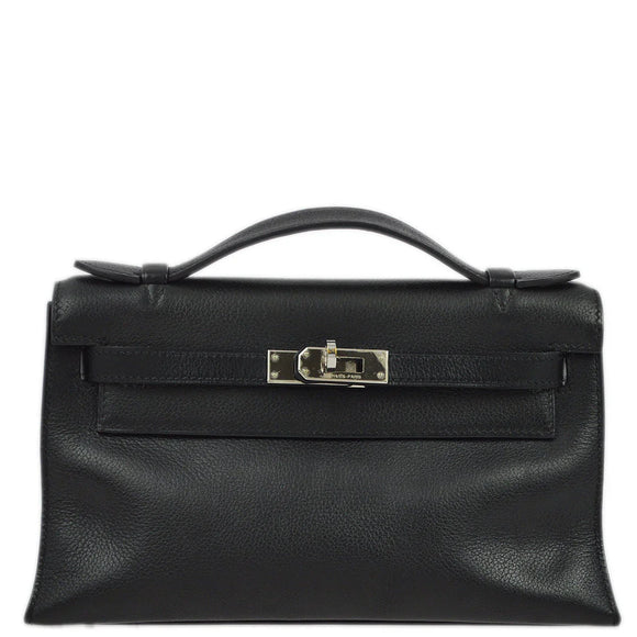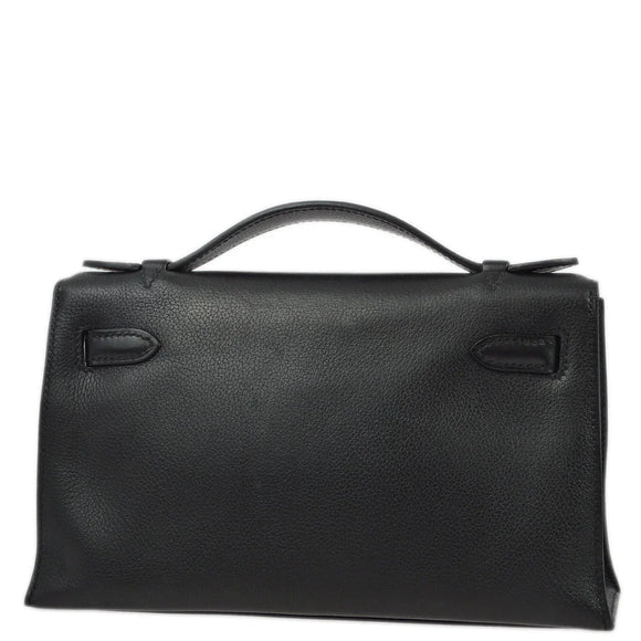 Hermes 2004 Black Evergrain Kelly Pochette Handbag