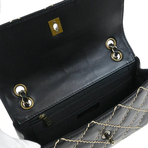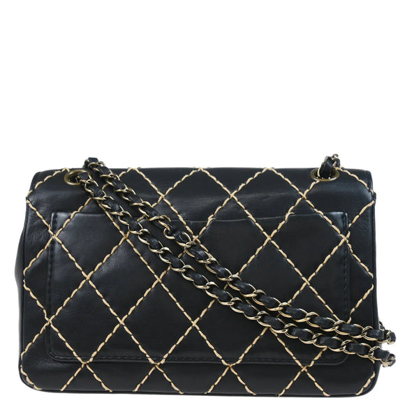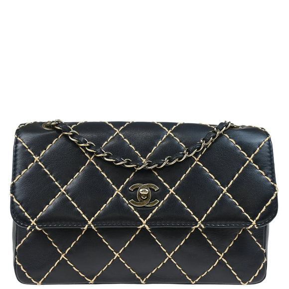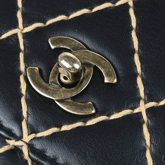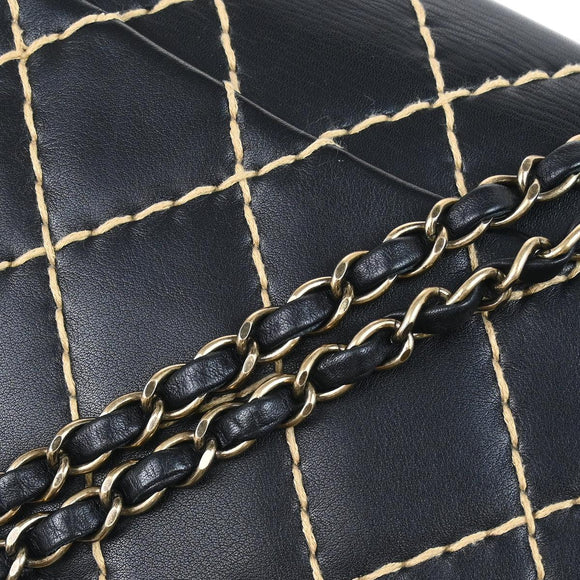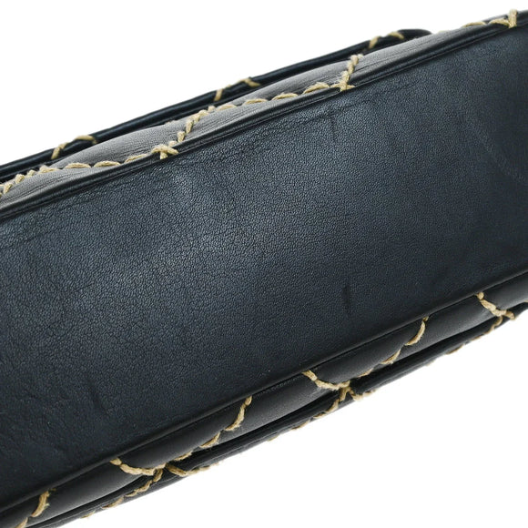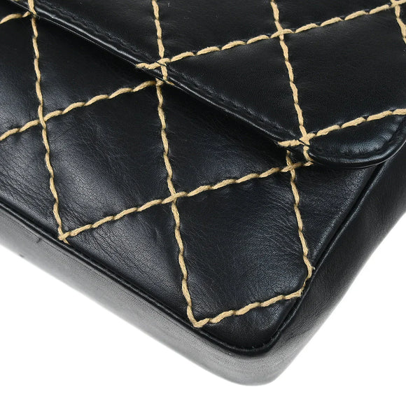 Chanel 2000-2002 Black Calfskin Wild Stitch Single Flap Shoulder Bag