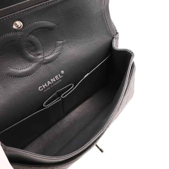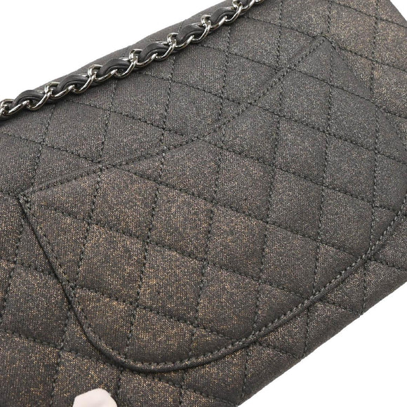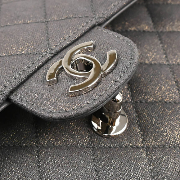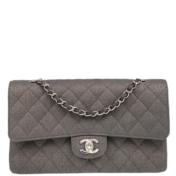 Chanel 2005-2006 Metallic Gray Cotton Medium Classic Double Flap Shoulder Bag