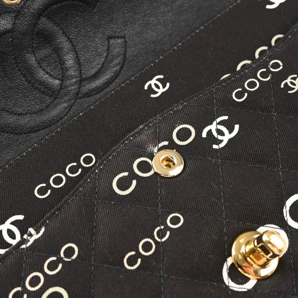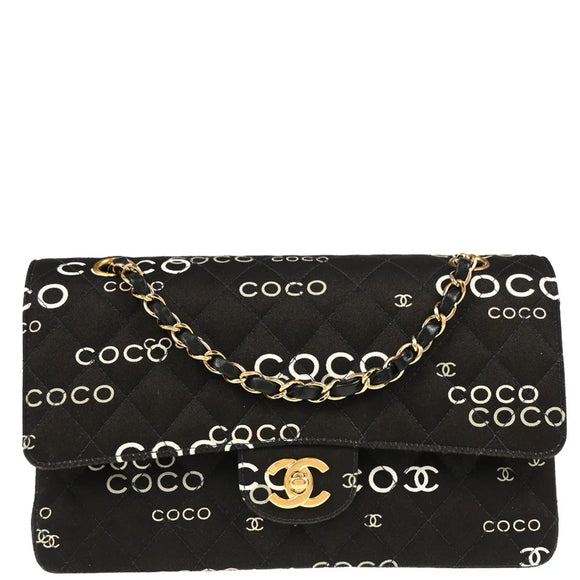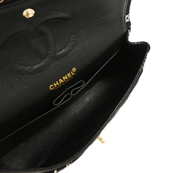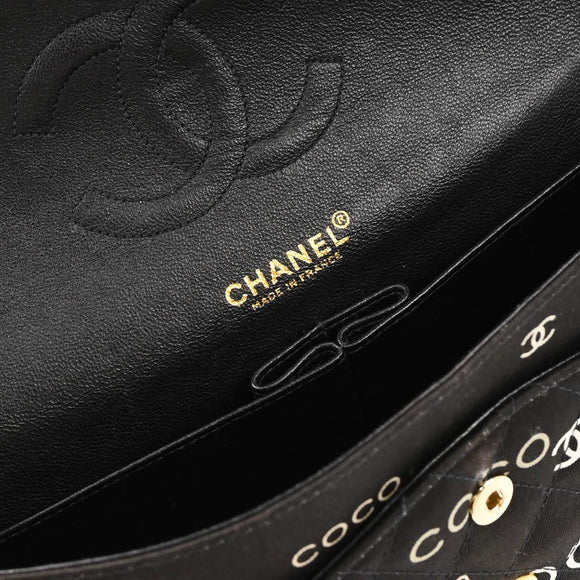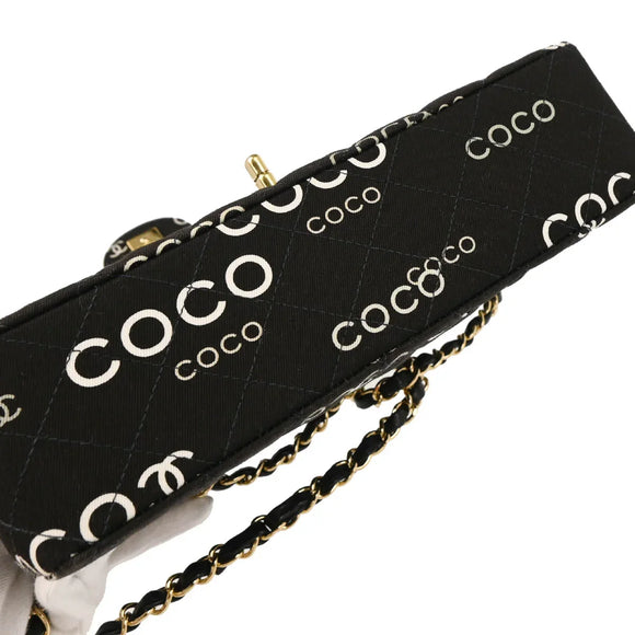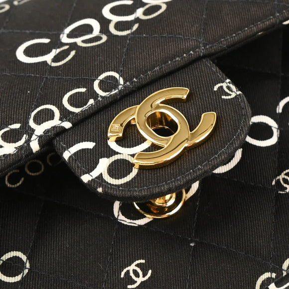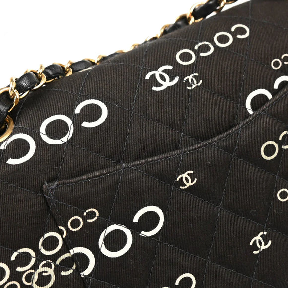 Chanel 2001-2003 Black Canvas COCO Medium Classic Double Flap Shoulder Bag