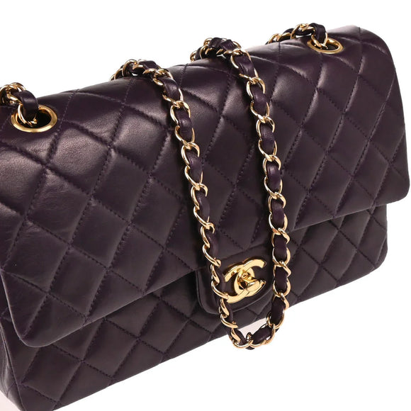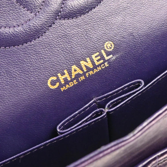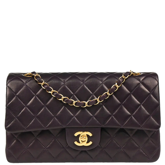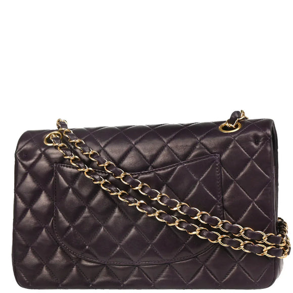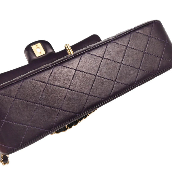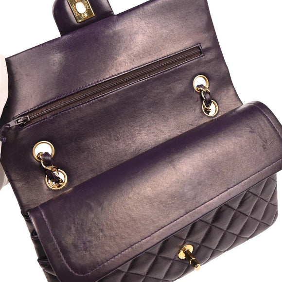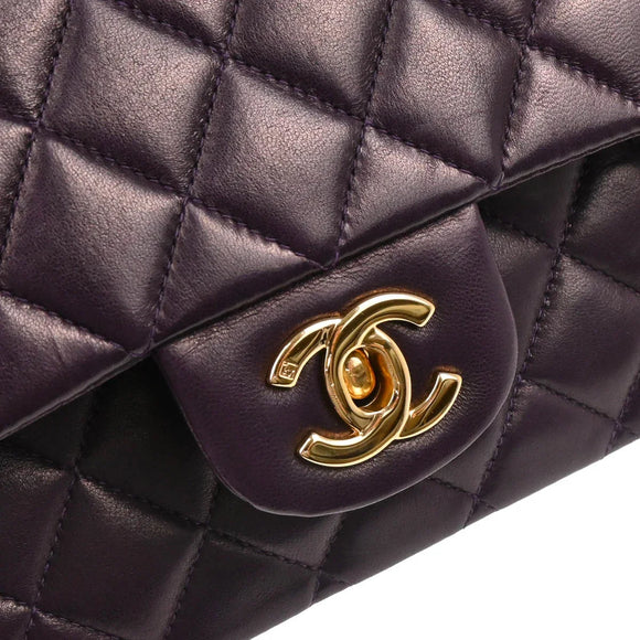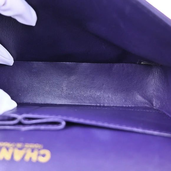 Chanel 2002-2003 Purple Lambskin Medium Classic Double Flap Shoulder Bag