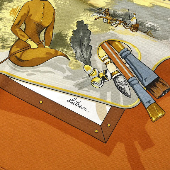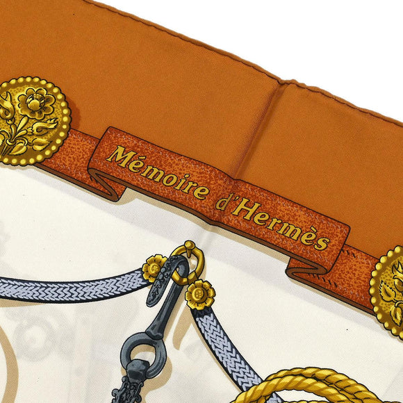 Hermes Scarf Carre 90 Memoire d'Hermes Brown Small Good