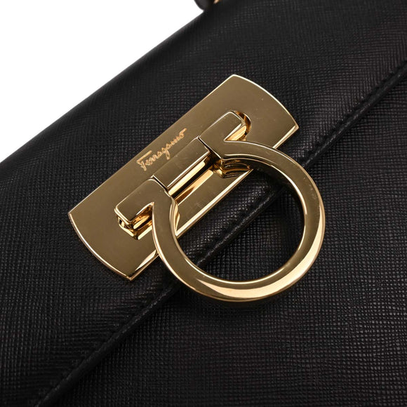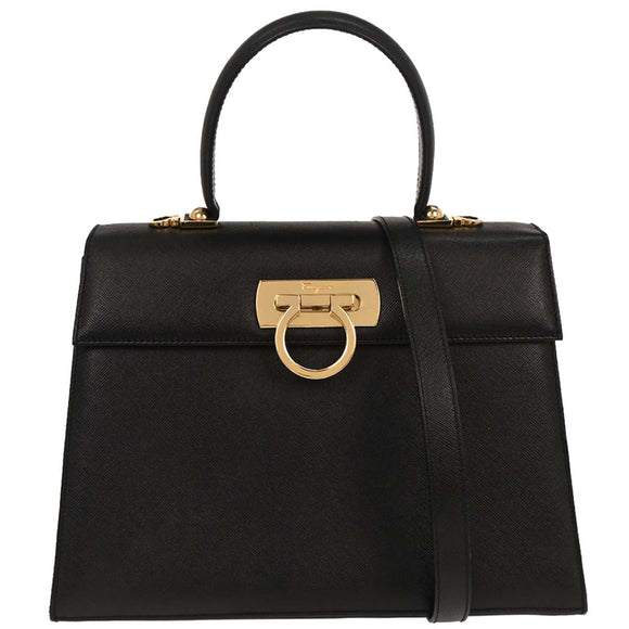 Salvatore Ferragamo Black Gancini 2way Shoulder Handbag