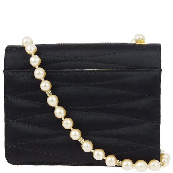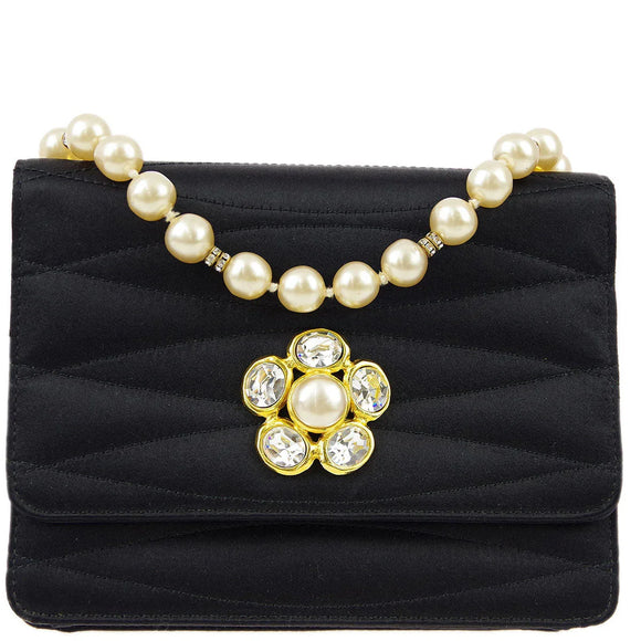 Chanel Black Rhinestone Artificial Pearl Chain Straight Flap Bag
