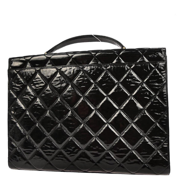 Chanel 1996-1997 Black Patent Leather Briefcase Business Handbag