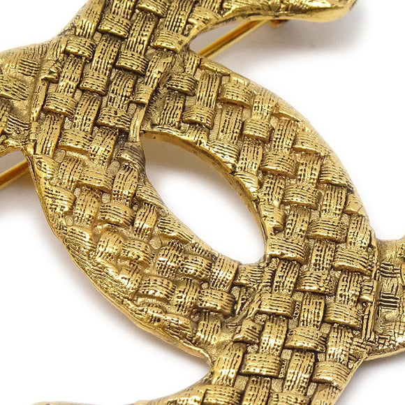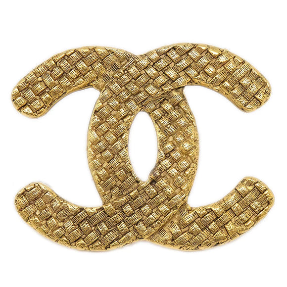 Chanel 1994 Woven CC Brouch Pin Gold 1262