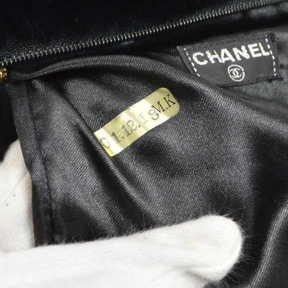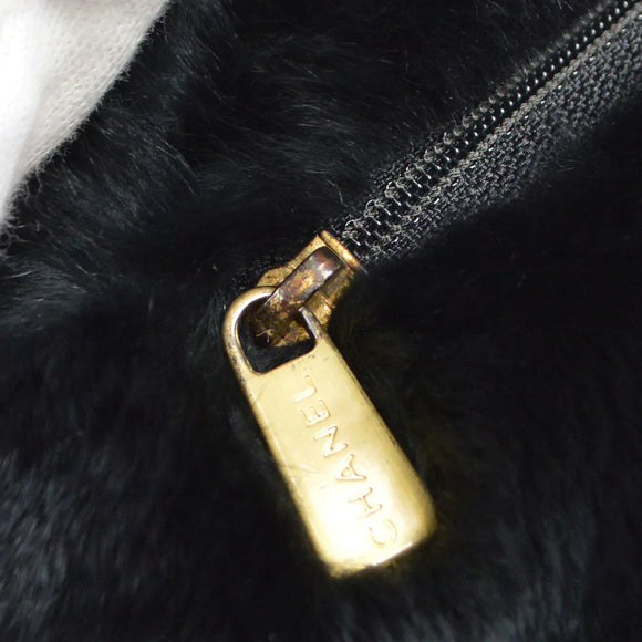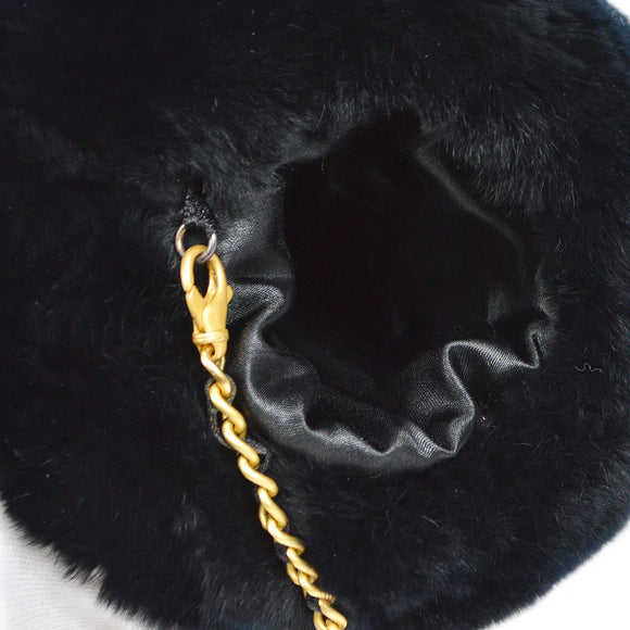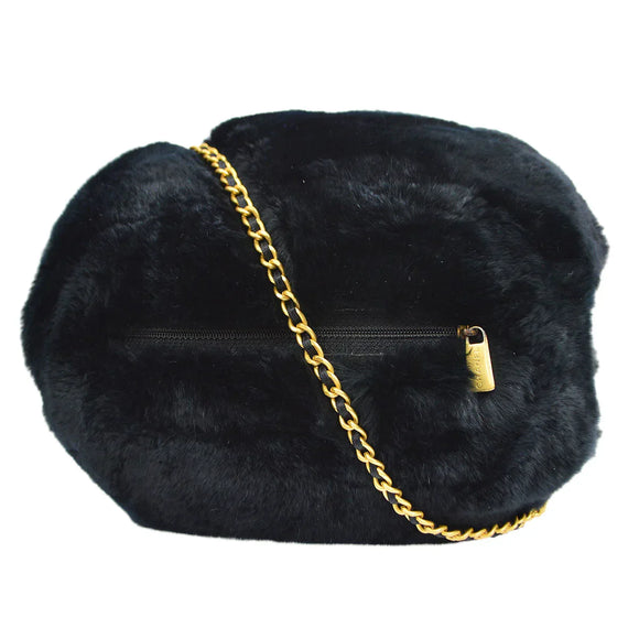 Chanel 2001 CC徽标Muff黑色皮草satchel