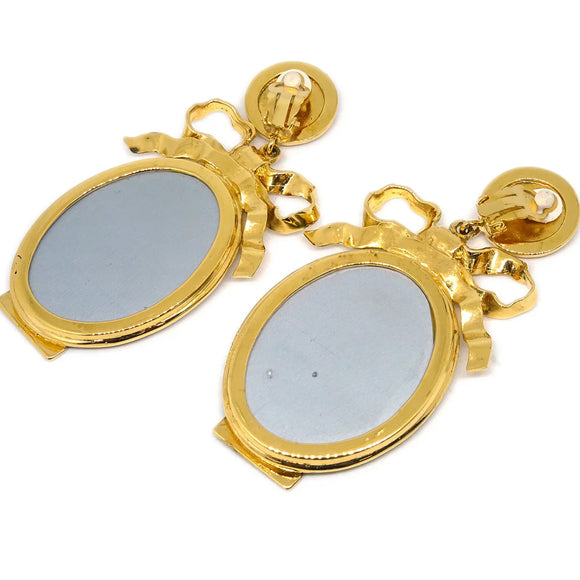 Chanel Mirror Dangle Earrings Clip-On Gold